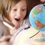 A fun, illuminated globe with illustrated map and a colouring poster.
