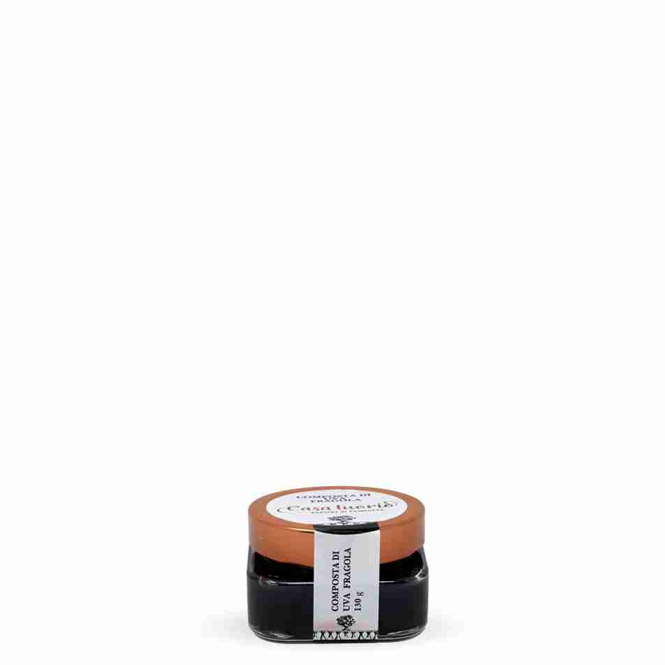 Fatta con l’uva fragola della pergola di famiglia, contiene pochissimo zucchero e frutta al 150%.