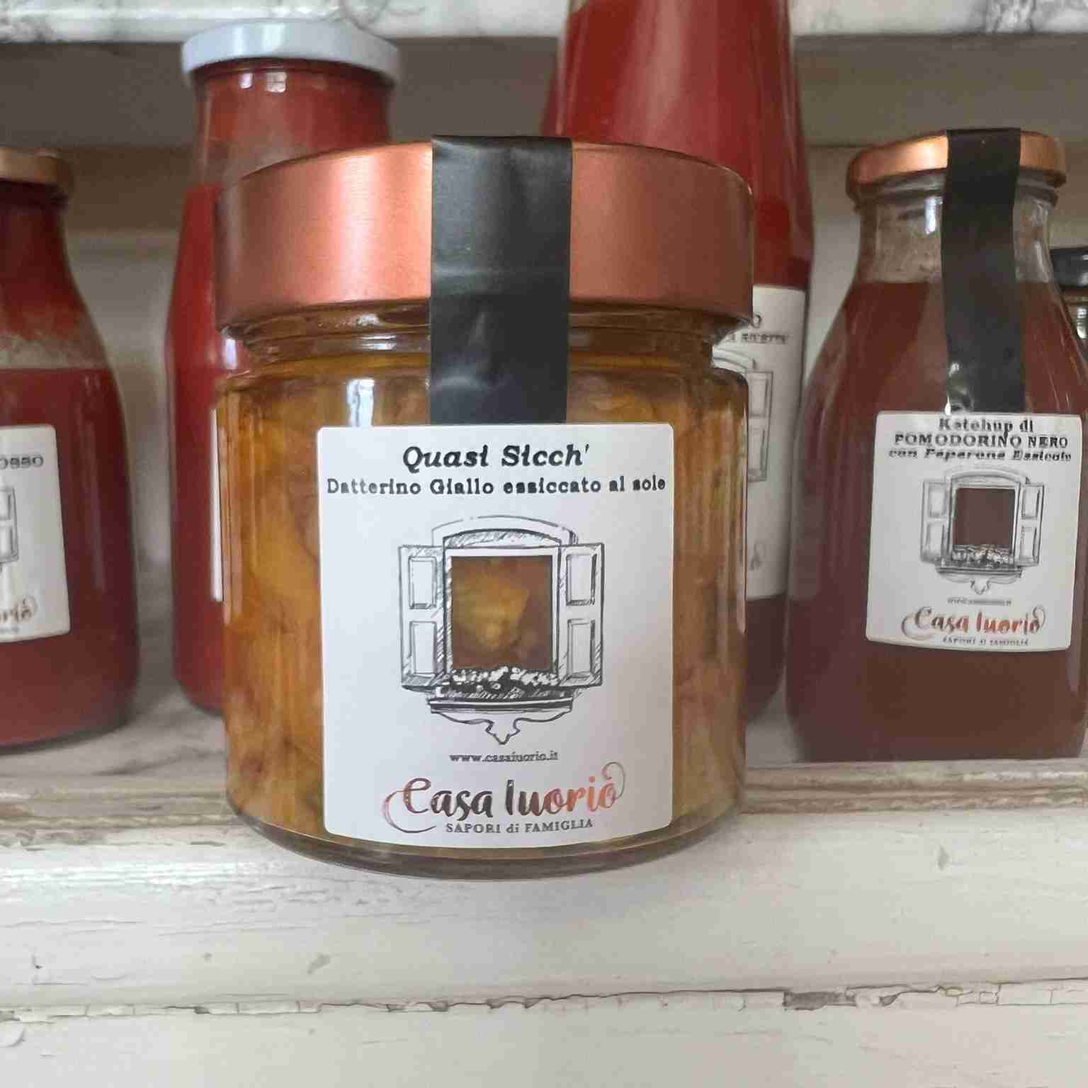 Datterino giallo parzialmente essiccato al sole, in modo naturale e lavorato a mano secondo antica ricetta.