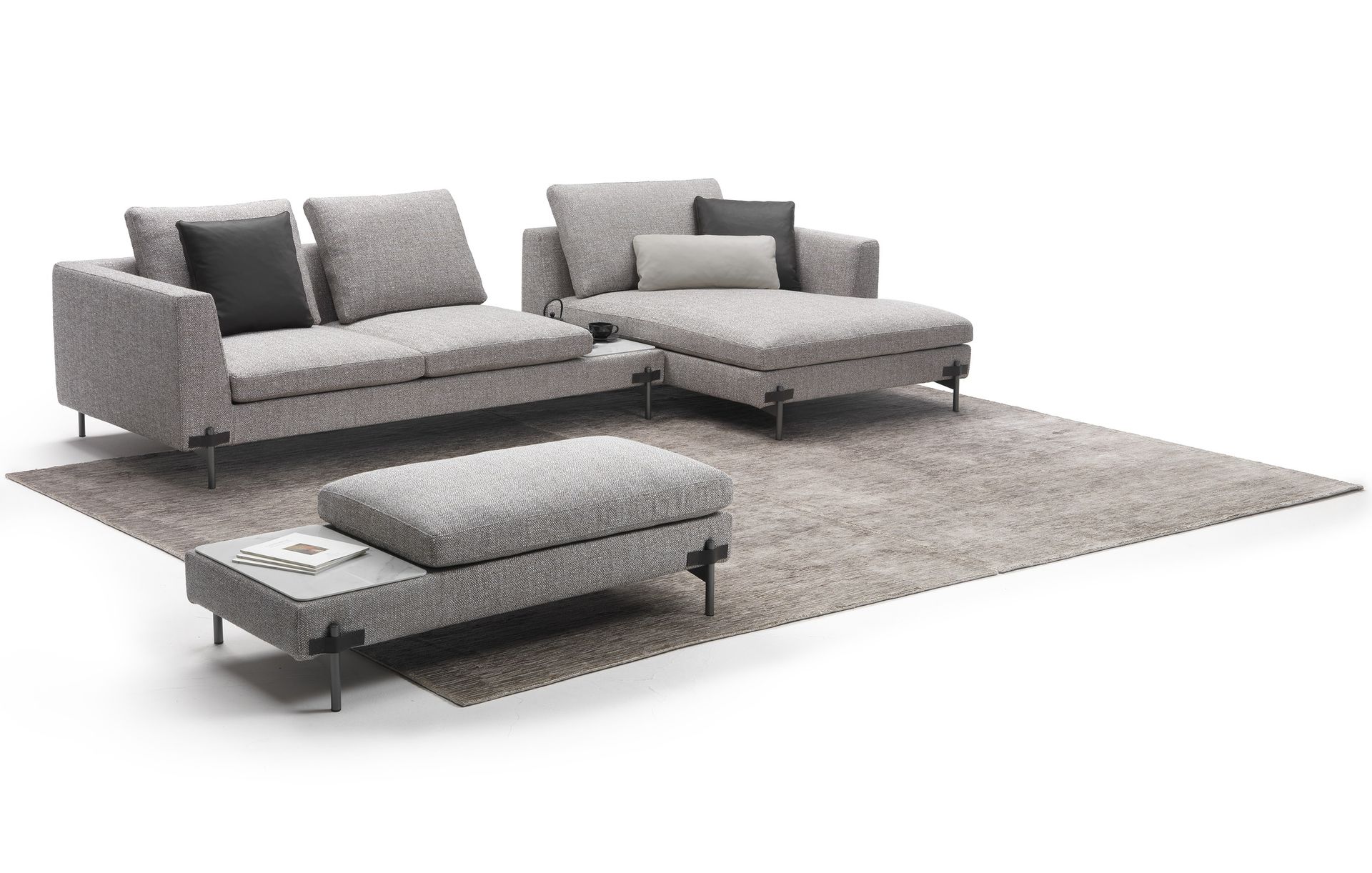 La forza progettuale di Mojito si trova nei dettagli, come i piedini in primo piano avvolti da una fettuccia che può essere realizzata in tono con il rivestimento del divano oppure in contrasto. Accogliente, raffinato ed informale al tempo stesso, questo sistema di sedute presenta una linea versatile che gli consente di inserirsi con stile ed eleganza negli ambienti più diversi.
