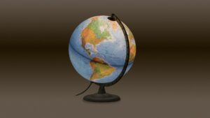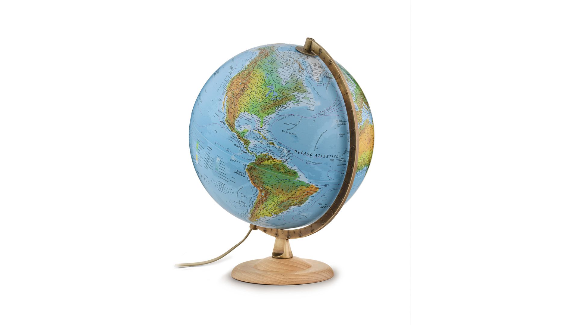 An elegant, illuminated globe featuring up-to-date physical and political cartography.