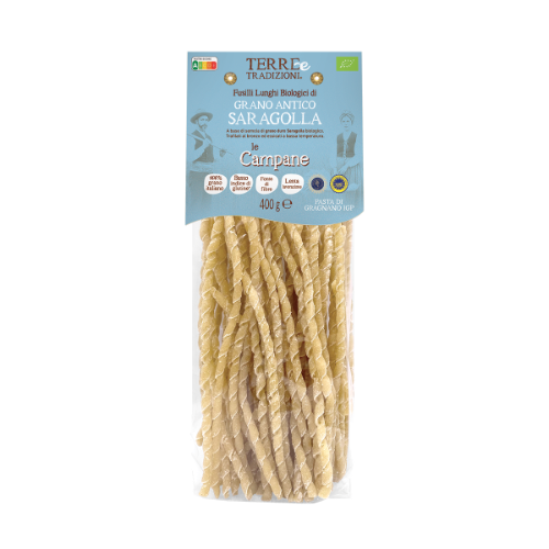 Organic Long Fusilli made from ancient Saragolla durum wheat, part of the 'Le Campane' line
