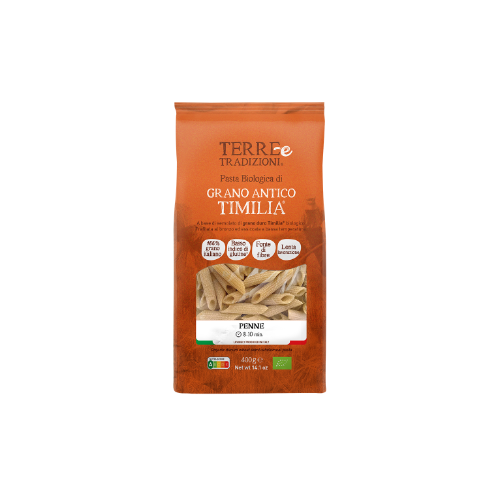 Organic Penne made from ancient Timilia® durum wheat.