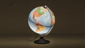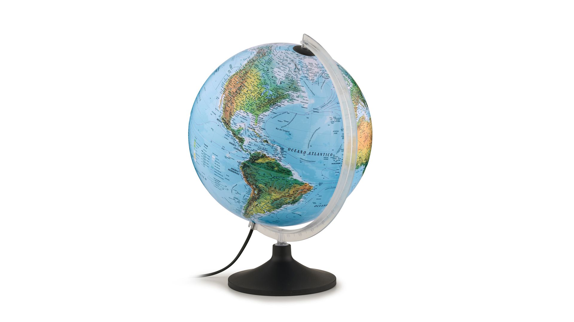 An elegant, illuminated globe featuring up-to-date physical and political cartography.