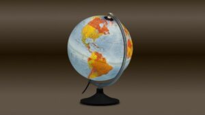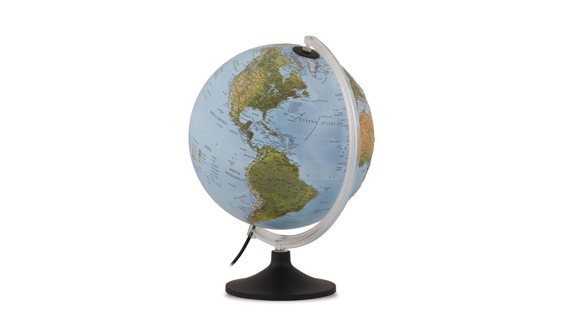 An elegant, illuminated globe featuring up-to-date physical and political cartography, Raised relief map