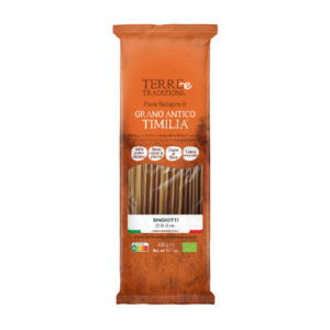 These pastas are made from organic semi-wholemeal durum wheat semolina of Timilia® (or Tumminìa) from organic farming. Timilia® represents Sicilian-Mediterranean biodiversity and is the result of millennia of natural selection.