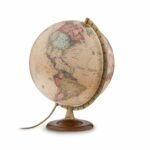 An elegant, illuminated globe featuring up-to-date physical and political cartography, antique style looking